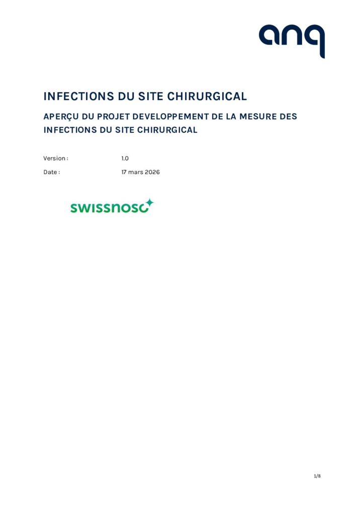 Swissnoso, le centre national pour la prévention des infections, est mandaté par l’ANQ depuis 2009 pour collecter et surveiller l’évolution des infections du site chirurgical dans les hôpitaux suisses de soins aigus. Seules les interventions pour les patients hospitalisés sont incluses.